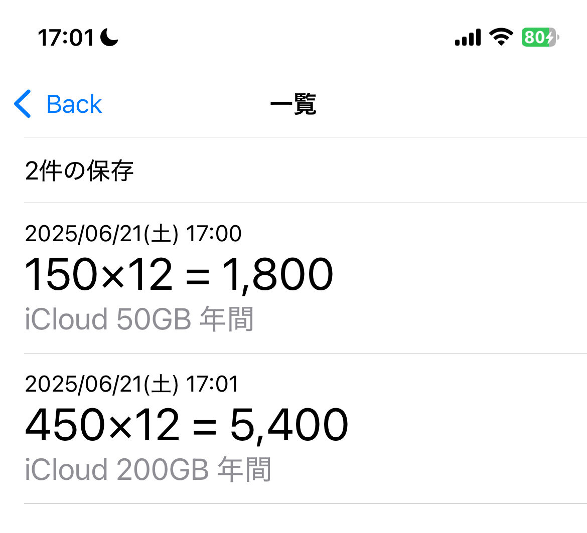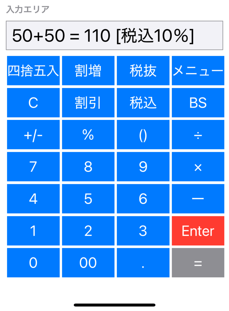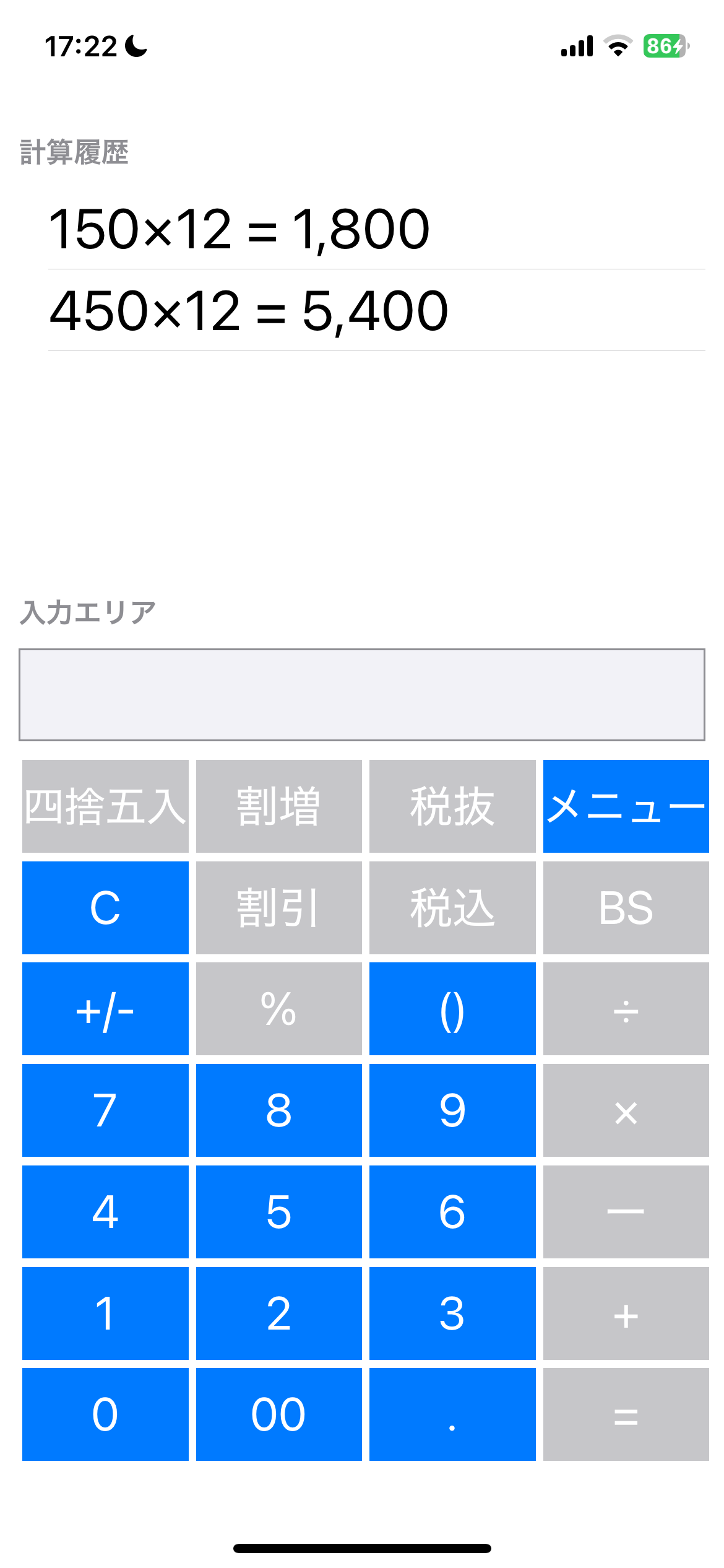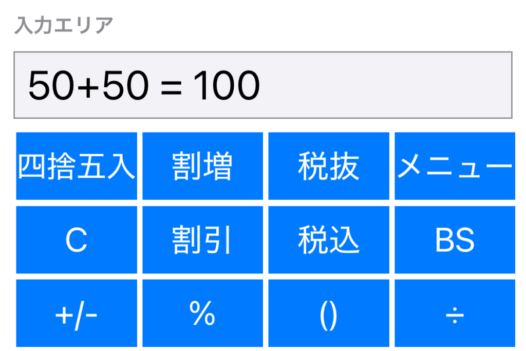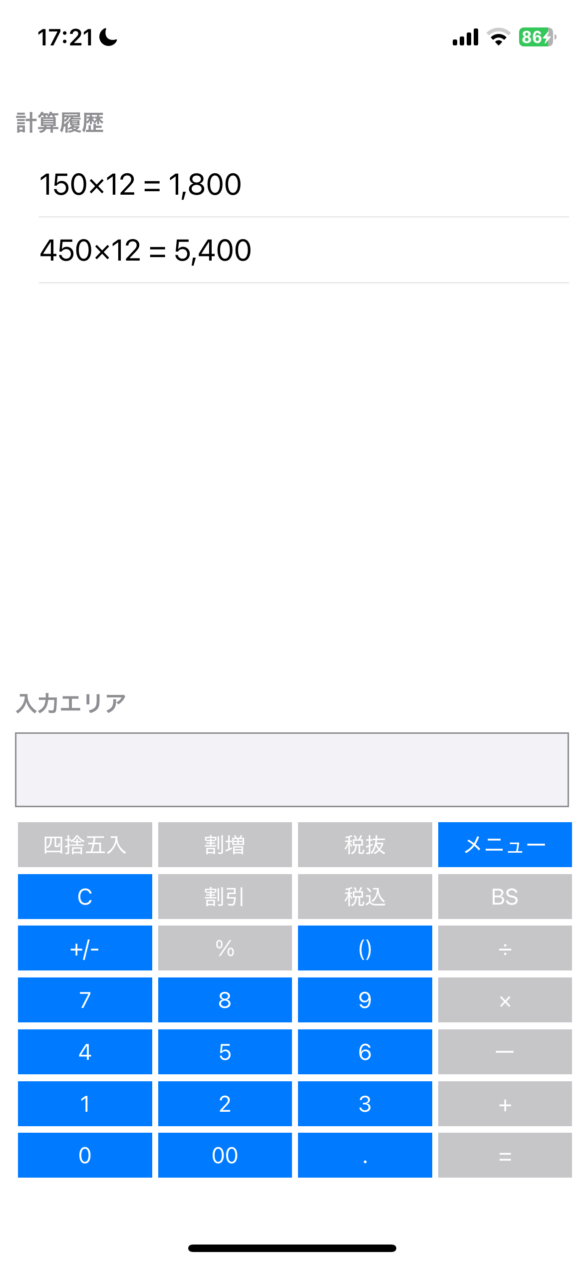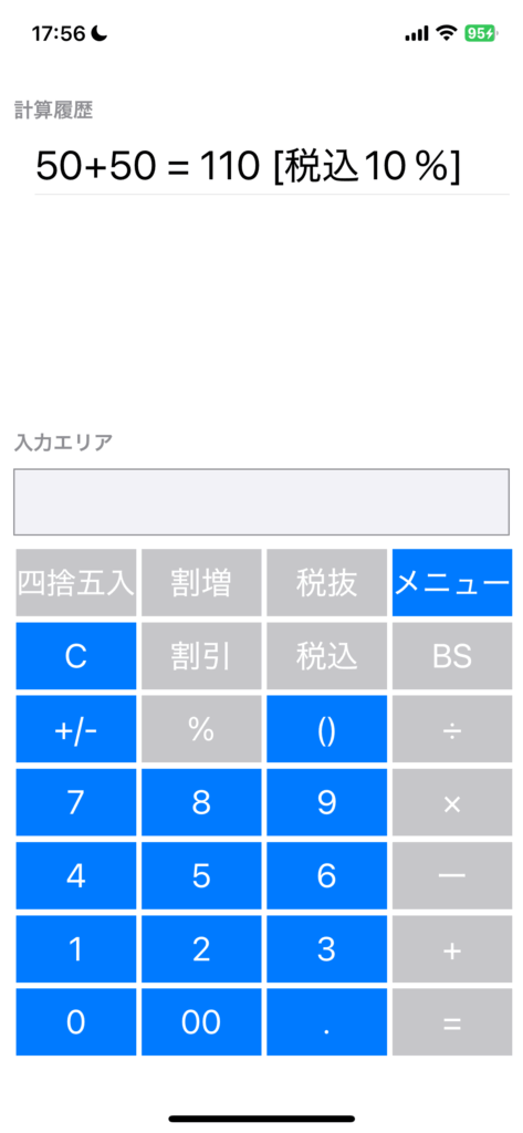 計算履歴に計算が保存され、入力エリアがクリアされます。