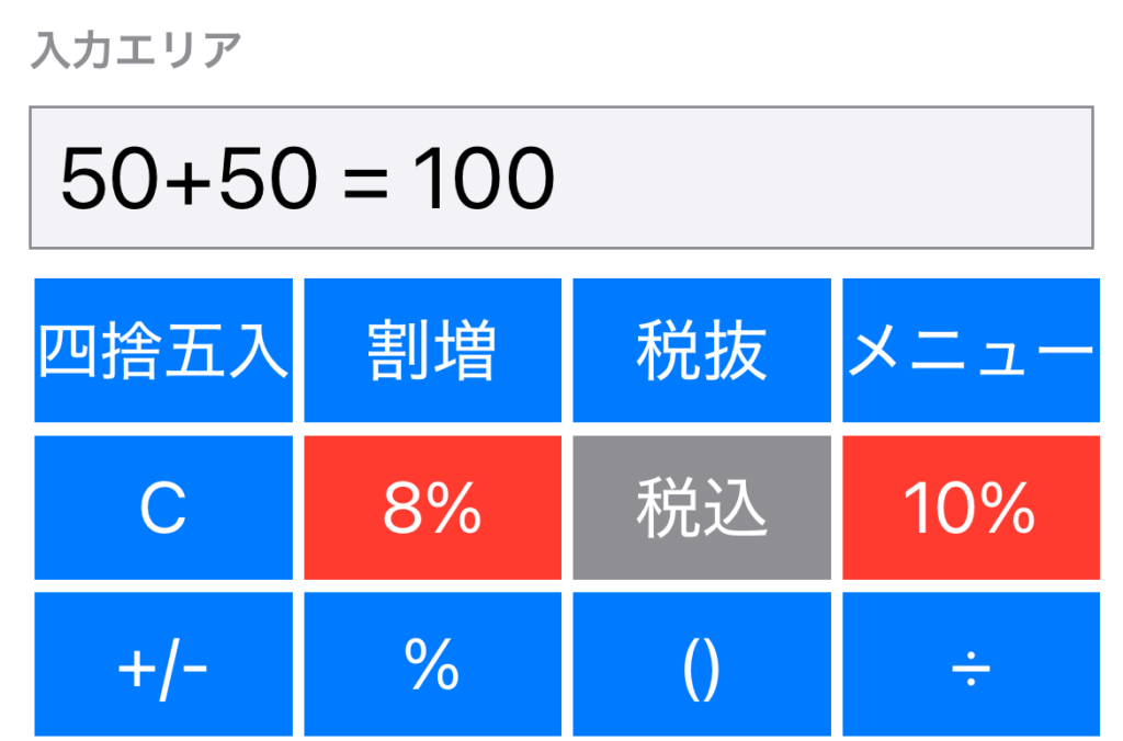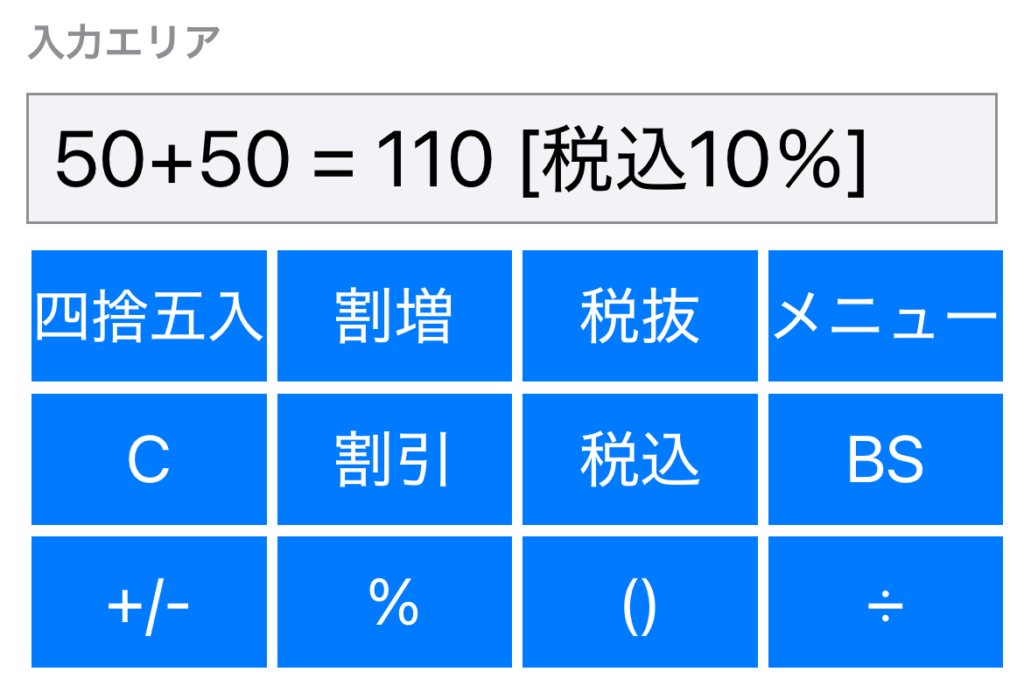 計算結果[100]に対して、10%の税込金額を計算して、計算結果を[110]に置き換えます。